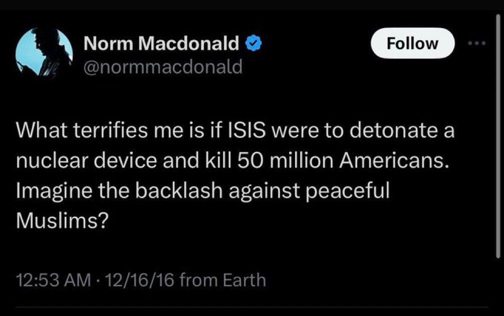 It puts me in mind of the quip by American comedian, the late Norm MacDonald: